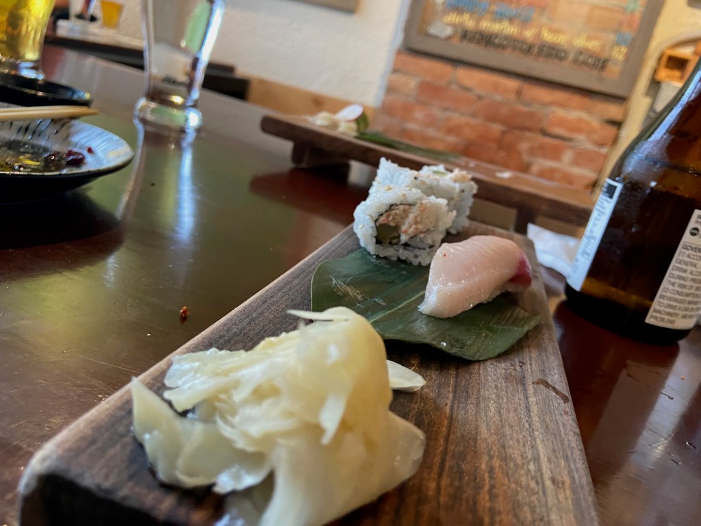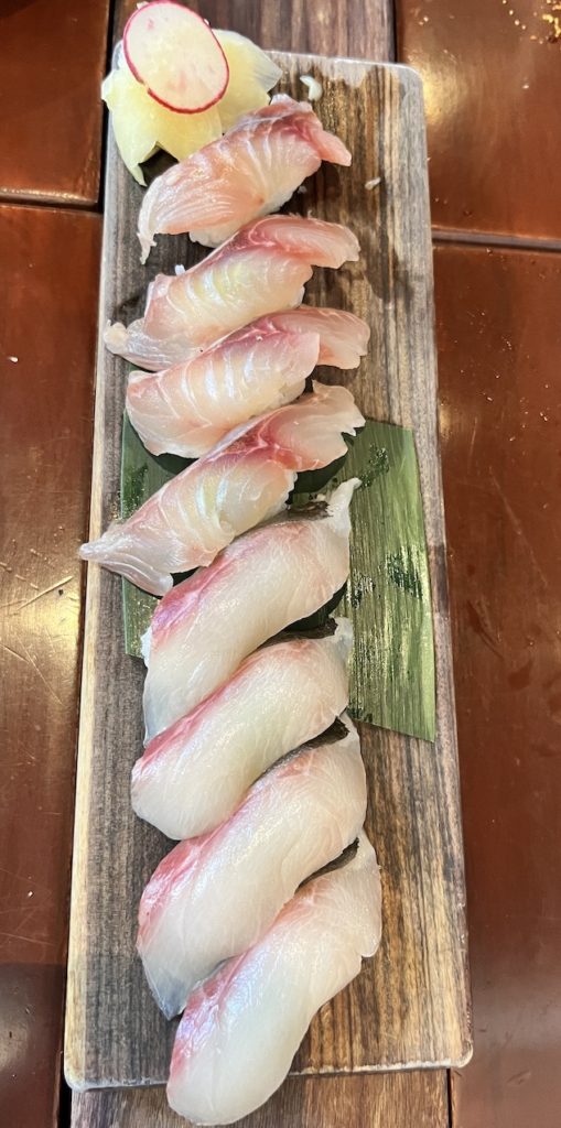 *Some* of our sushi – Negihama and Crab Salad Rolls, Otoro/Madai, Skipjack, and Anaki